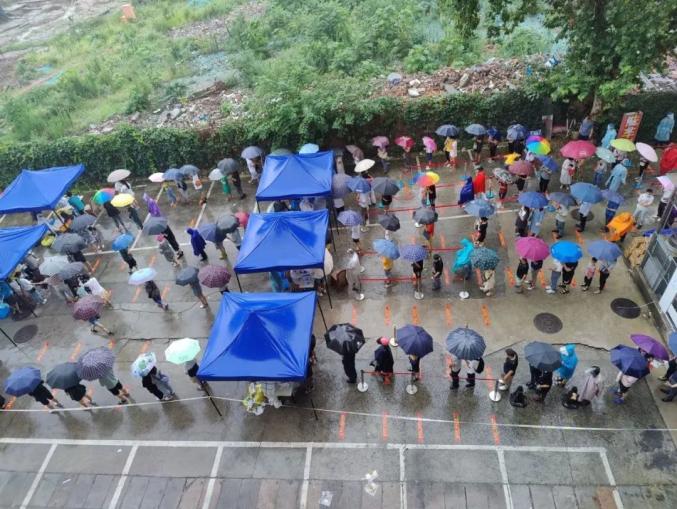 南京市民雨中排队做核酸检测|现代快报