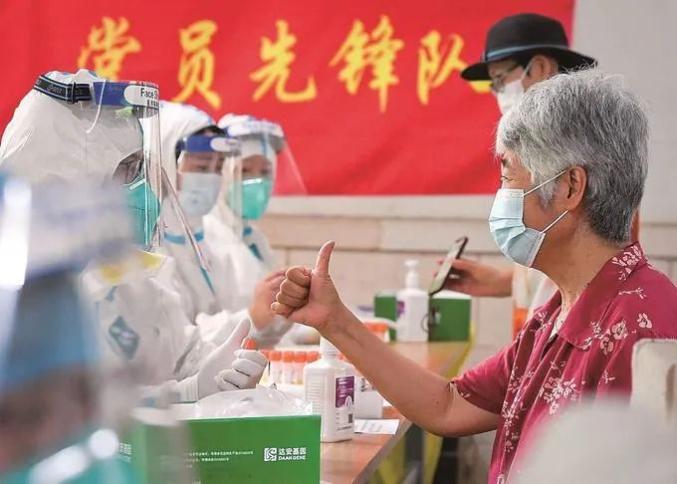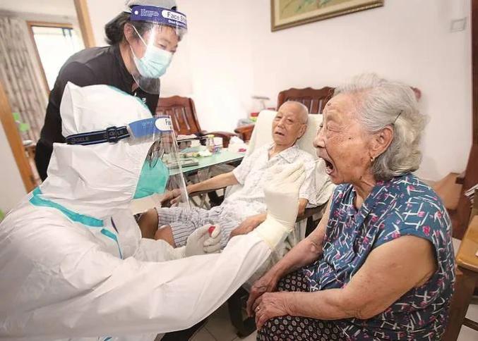 25日,南京定坊社区为辖区的孕妇、老人以及行动不便的居民开辟绿色通道,上门为他们进行核酸采样。赵亚玲 摄