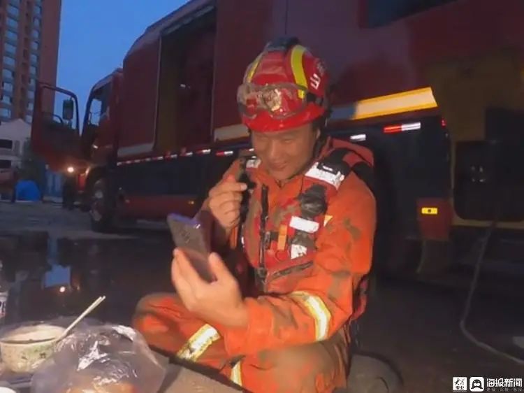 刚到河南那两天,每天趟着泥水进村救援,疲惫、睡眠不足围绕着每个消防队员。但只要有零星休息时间,宋庆杰就尽量和未婚妻通个电话。被记者问及“媳妇怎么说的”,宋庆杰略带羞涩地撒了波“狗粮”:“她问我吃得饱不饱,穿得暖不暖。虽然通话时间不长,但是感觉暖暖的。”