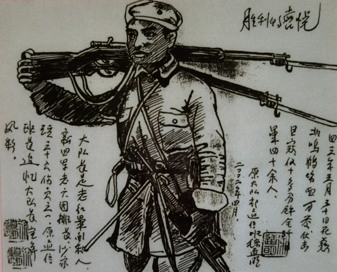 ●参加万岙战斗的新四军老战士徐道明所绘指挥万岙战斗的大队长张世万画像