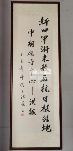 我从右侧入门,进到门中,可以看到由中国新四军和华中抗日根据地研究会副会长、铁军杂志社社长王清葆题写的“新四军浙东敌后抗日根据地中期领导中心——洪魏”几个字。它们就好像写文章时的一个总起句,观点抛出之后,后面所要做的就是印证,无论是摆事实还是讲道理,全都是为了说明它的正确性。