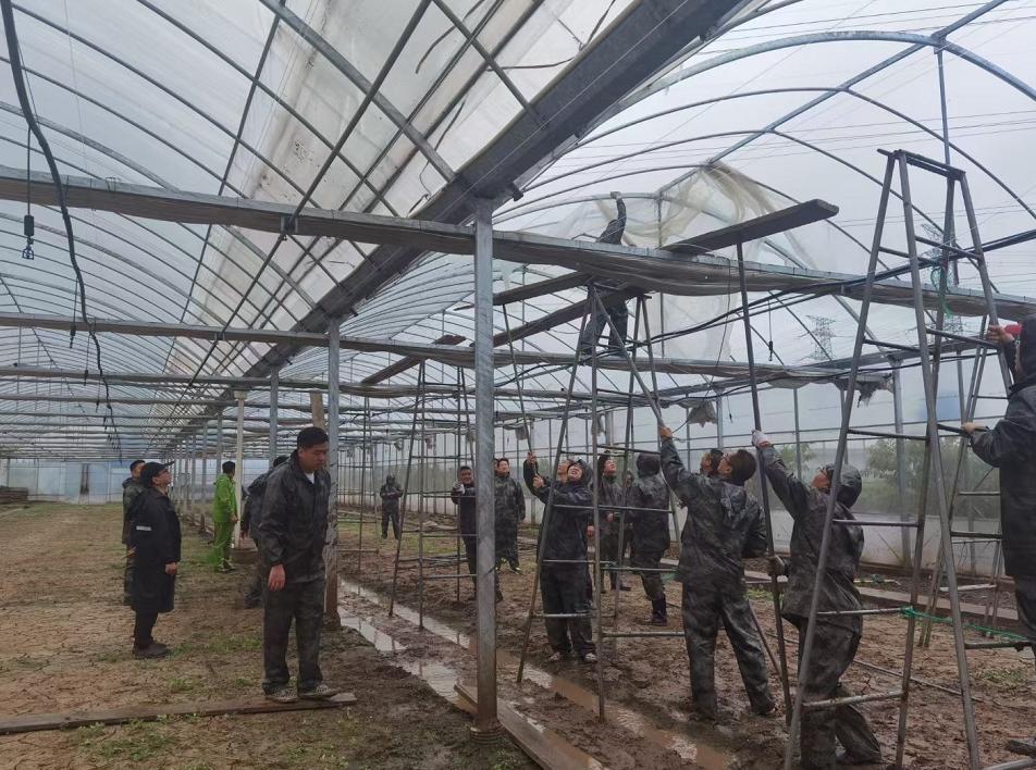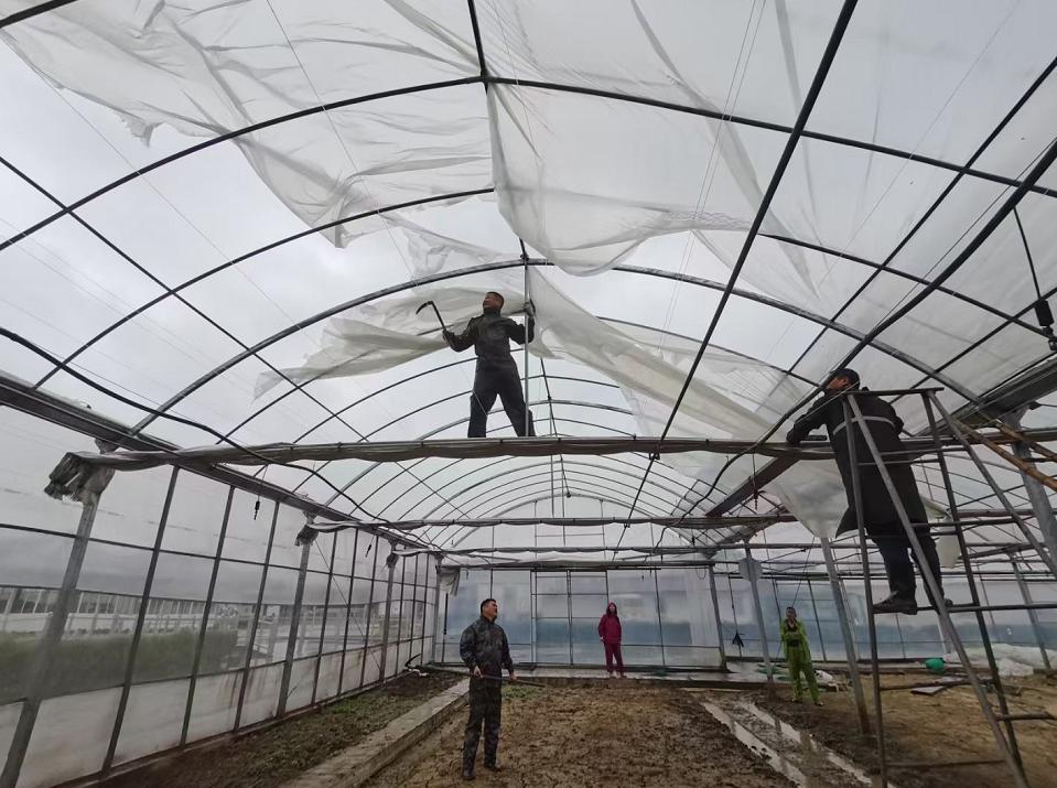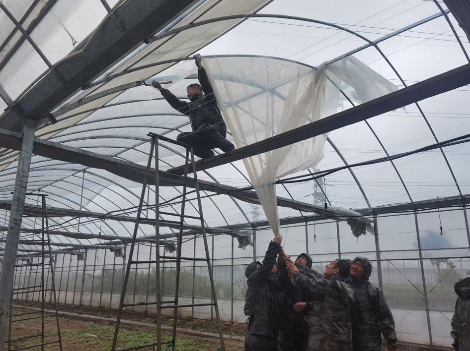 大棚农膜被吹起 泥城民兵连紧急拆除
