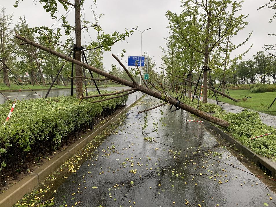 浦港养护的一名相关负责人介绍,单单将近6公里长的东海大道上,就有2000多棵树木倒伏。