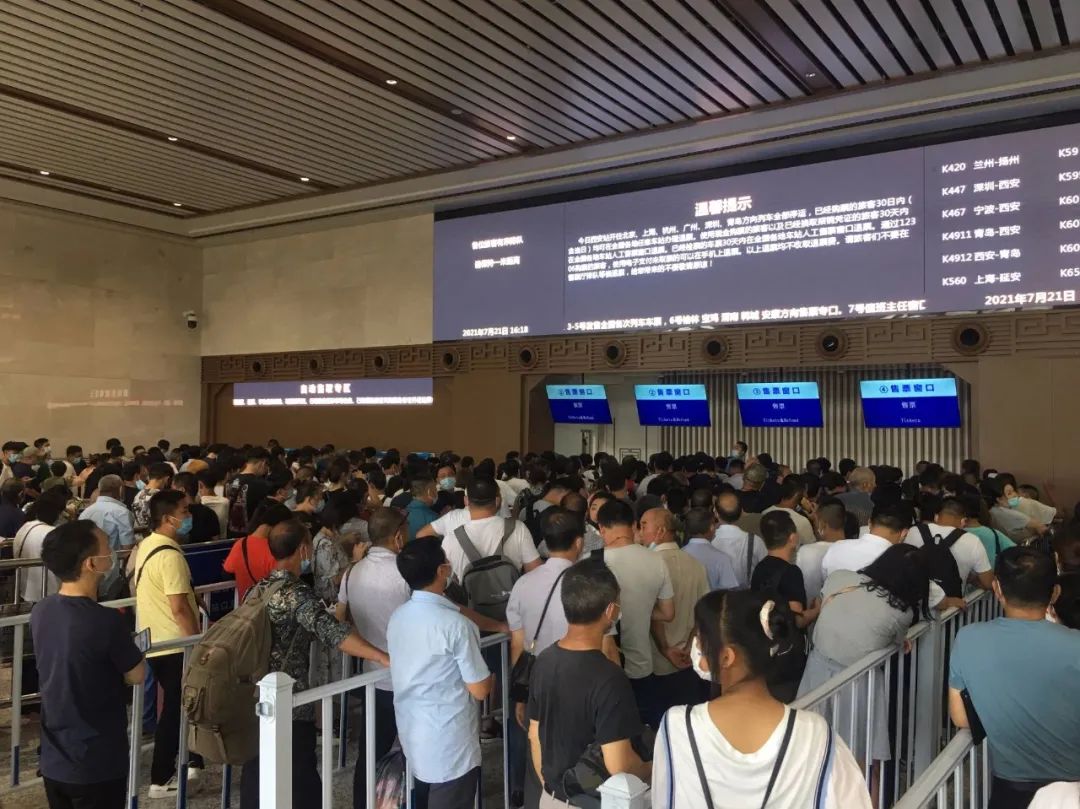 郑州强降雨(图片来自@中国铁路)随后,郑西高铁、陇海铁路郑州至洛阳区间发生水漫线路、路基坍塌、设备淹水等灾害。受此影响,西安车站、西安北站开往北京、上海、广州、武汉、长沙、大连、天津、深圳、福州、南昌、杭州、青岛等方向的多趟列车出现不同程度的晚点、折返、停运,还有数万名旅客滞留在西安。