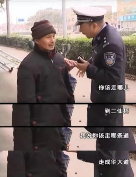 《谭谈交通》告诉全国人民,到二仙桥要走成华大道。谭警官和电瓶车大爷鸡同鸭讲惹人发笑,笑归笑,其实许多人像大爷一样,除了“红灯停绿灯行”,完全搞不清楚自己该走哪条道。