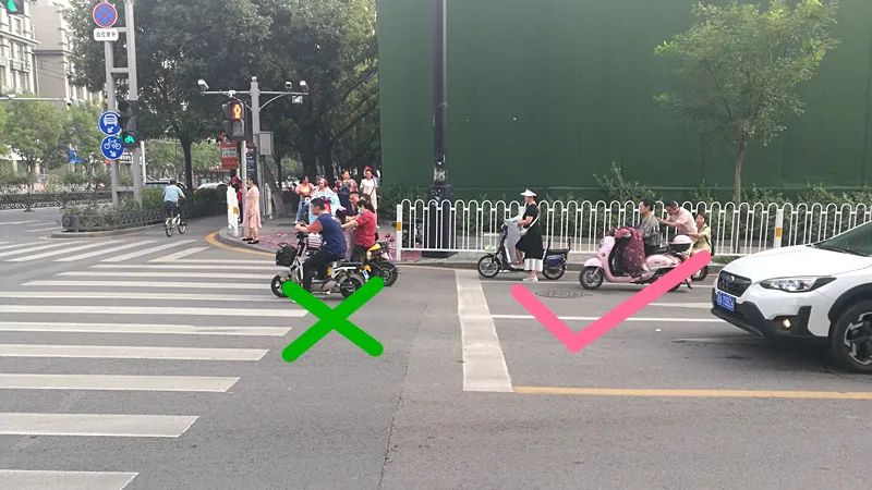 停车:等绿灯时不能越过停止线,更不能占用斑马线。