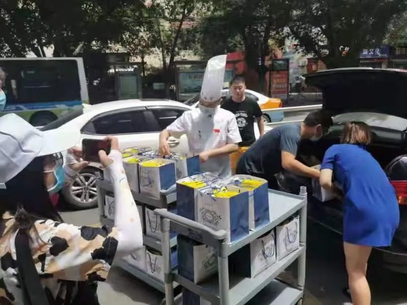 爱心企业为检测点工作人员和志愿者送去盒饭