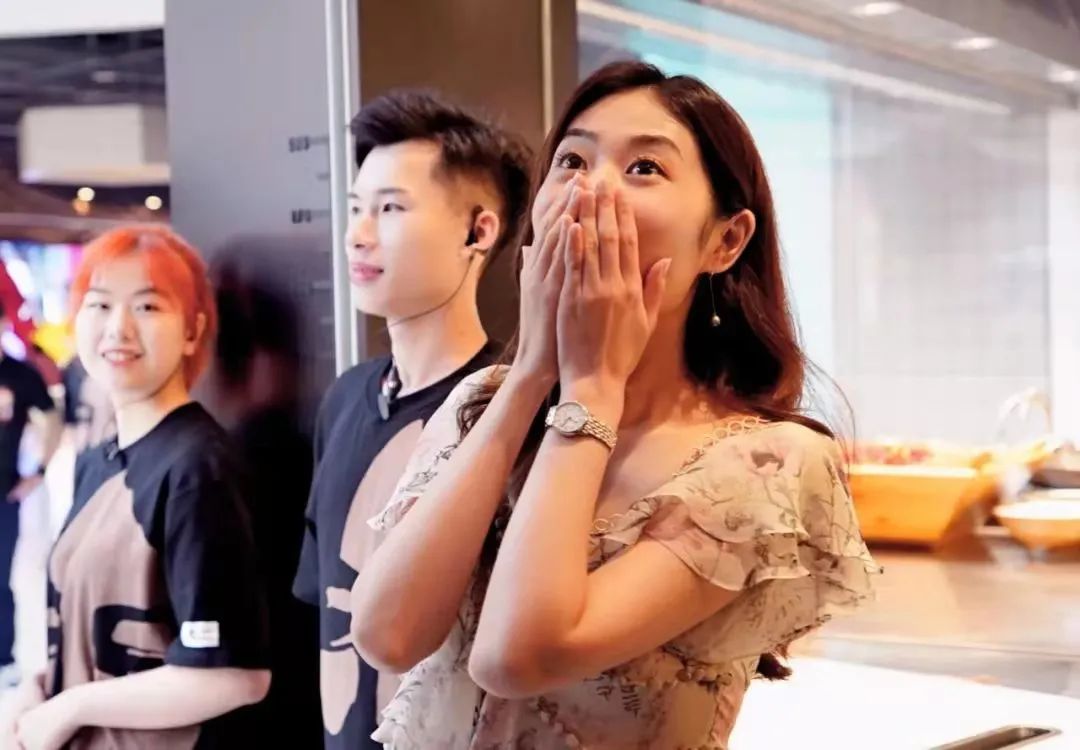 接着是从眼睛到嘴巴都照顾到的品牌体验,统一且具有视觉冲击力的门店装潢,配合令人惊喜的品牌广告片,及凭借魔性小卡片现场抽取的盲盒福利,都给消费者带来了沉浸式的观感体验。