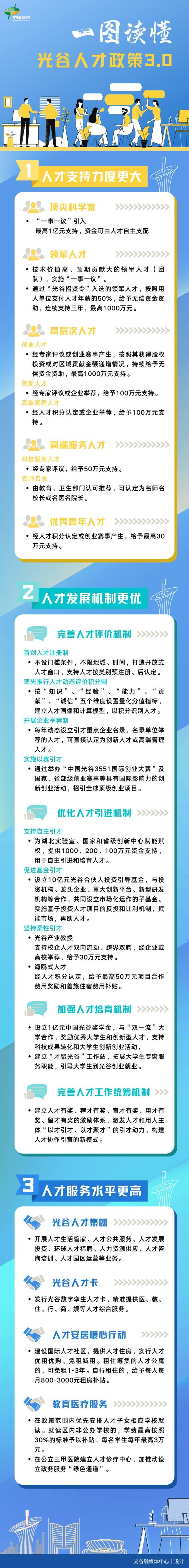 光谷还将组建人才集团,发放人才卡,提供“医、教、住、行、商、娱”的体系式服务支撑。在公立三甲医院建立人才诊疗中心,设立政务服务“绿色通道”,让人才更舒心;强化人才子女教育支持力度,对就读非公办学校的,给予学费补贴,让人才安心;大力度实施人才安居行动,高标准建设国际社区,开展人才优租优购、免租减租,让人才更暖心;提供便捷的出入境服务,开展永久居留推荐,让国际人才“少跑路”“轻松留”“易就业”。