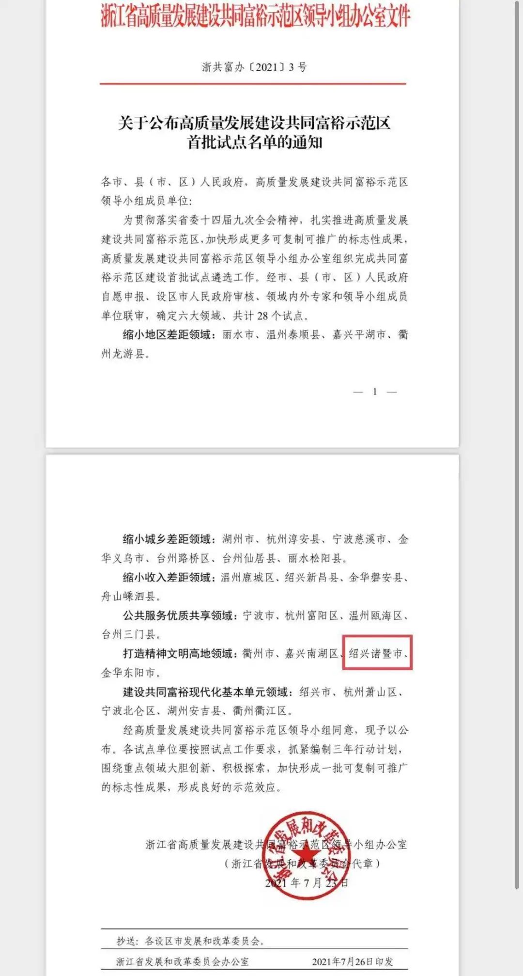 原标题:《重磅!诸暨成为浙江高质量发展建设共同富裕示范区首批试点》