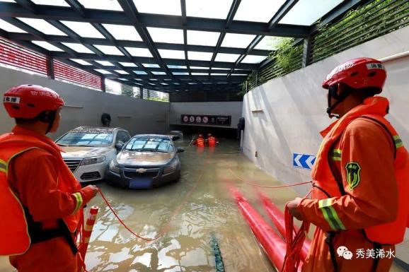 ▲7月24日,经过一夜长途,10名浠水消防员到达郑州市中牟县南熙福邸小区,马不停蹄参与抽水排涝作业