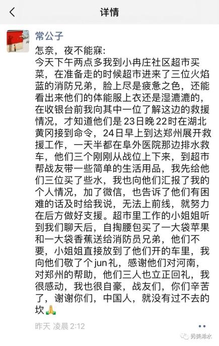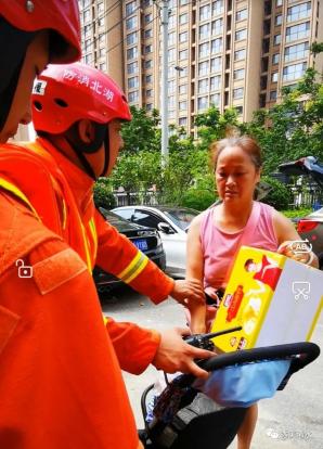 ▲7月24日下午2点左右,一位“有备而来”的热心婆婆,推着一辆满载零食、饮料和牛奶的婴儿推车,想要把这些心意送给消防员,消防员再三婉拒,并将婆婆送回家中。