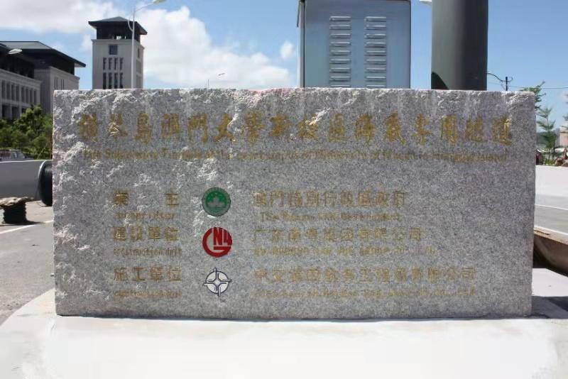 在广东省珠海市南部,绵密的沙滩延伸出一片海岛,因其像横在南海碧波上的古琴,故名横琴岛。由该岛向东,一条海底专用隧道——澳门大学横琴新校区海底专用隧道“潜伏”在横琴与澳门之间的十字门水道下,这是国内第一条采用围堰明挖法修建的海底隧道,路线全长约1570米,宽约30米,其中隧道段长1430米,西起澳门大学横琴校区规划环岛路,下穿十字门水道,东至澳门路环莲花海滨大马路,这也是连接澳门大学横琴岛新校区和澳门特别行政区的唯一专用隧道。四航局首创的“曲线管幕+冻结”施工法,完成了首次成功采用大陆和澳门两地标准设计建成的跨境隧道,项目也成为了“一国两制”框架下创新示范工程。