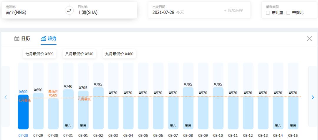 此外,记者通过部分航空公司,以及登录部分机票销售网站了解到,进入7月底,从南宁始发至北京、长沙、成都、青岛、西安、西双版纳、三亚、丽江等地的机票价格均出现了不同程度的回落。