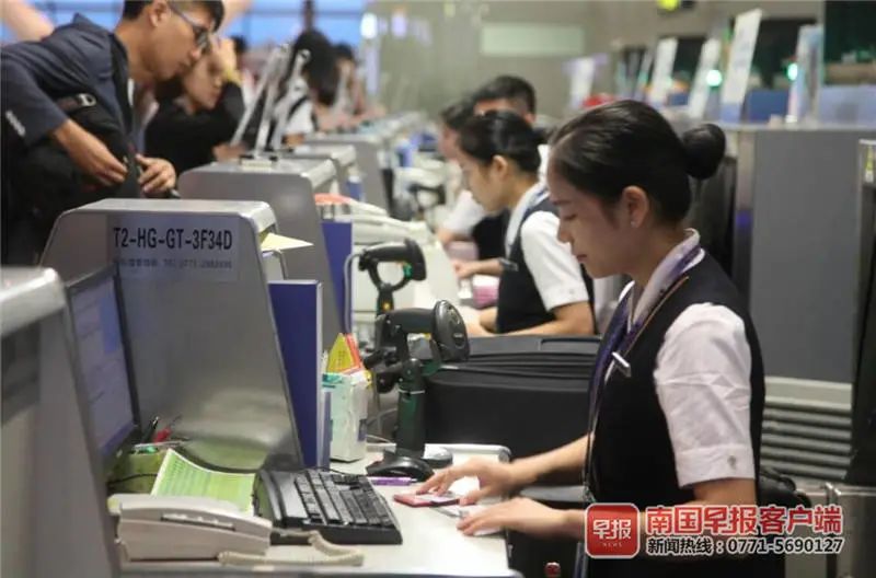 ▲图为工作人员正在办理相关乘机手续。南航供图