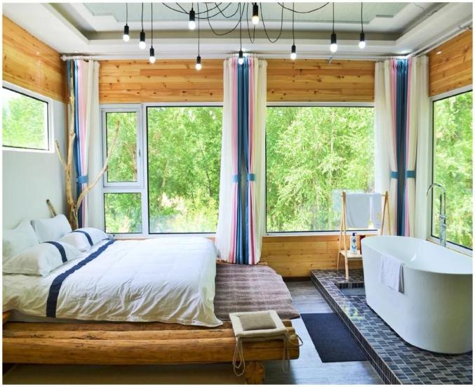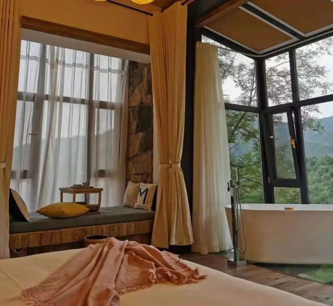 在这里,你可以静静感受山中的宁静,零距离接触大自然,还可以在清晨聆听虫鸟齐鸣,在黑夜抬头仰望繁星......置身于舒适纯净的室内凝视窗外,品味光阴的淡然与执着。