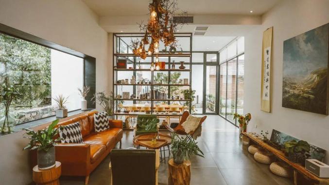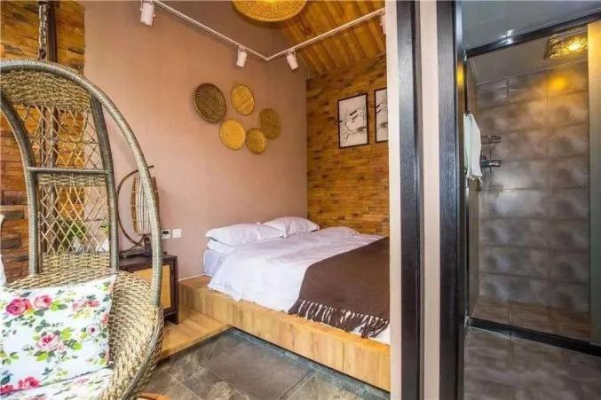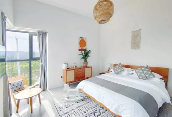 代舍民宿共有5间客房,大大的落地窗外一步一景。细看之下,每间客房都有不同的内饰及格调,还配有让人心生欢喜的鲜花、绿植以及复古音箱。泡一杯茶、捧一本书、放一首歌,在露台躺椅上慵懒地晒着太阳, 闭上眼,什么都不用想,这样便很好。