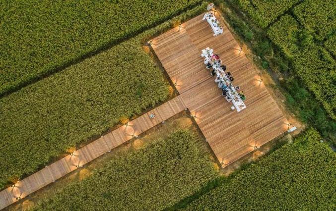 走过幽幽石巷,总能轻而易举的生出一种厚实的年代感。翠竹深处的庭院开满绣球花,把郑板桥的诗画意境都装进了小院。夕阳西下,坐在稻田之上把酒言欢,风吹稻浪就是最好的“下酒菜”。