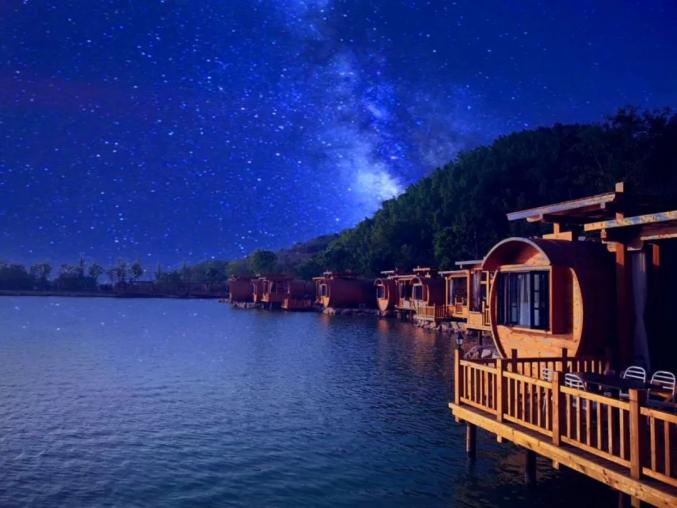 推窗见山,出门见水,红颜容木桶民宿作为国内首家木桶酒店,创新又不失乐趣,个性又不失经典。坐拥20000平方米的红颜湖边,夜观星海苍茫,日赏九如风光,美不胜收!
