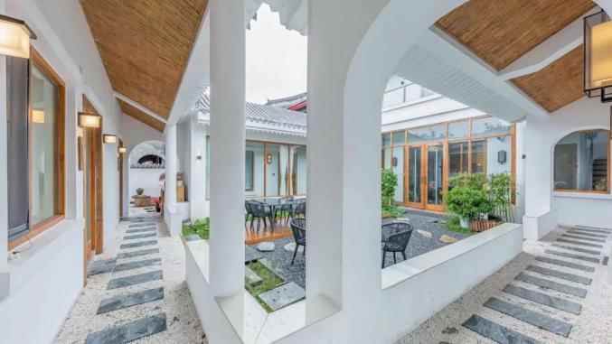 商玉客栈是江南小山村院落文化的一个缩影,也是一个始终生活着的水乡民宿。白墙黑瓦、小桥流水,墙线错落有致,老宅改造而成的建筑自带一股子民国气韵,有古韵之美,又含一丝现代之意。