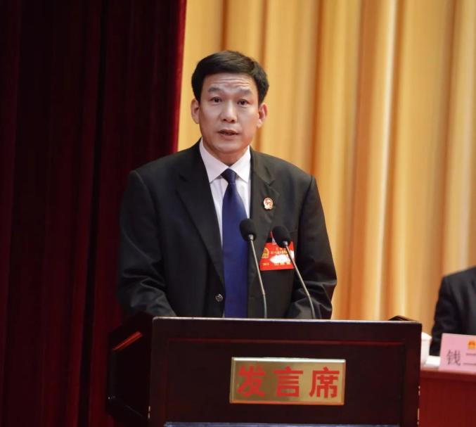 县人大常务委员会主任刘洪洁受县十六届人大常委会委托,向大会作工作报。