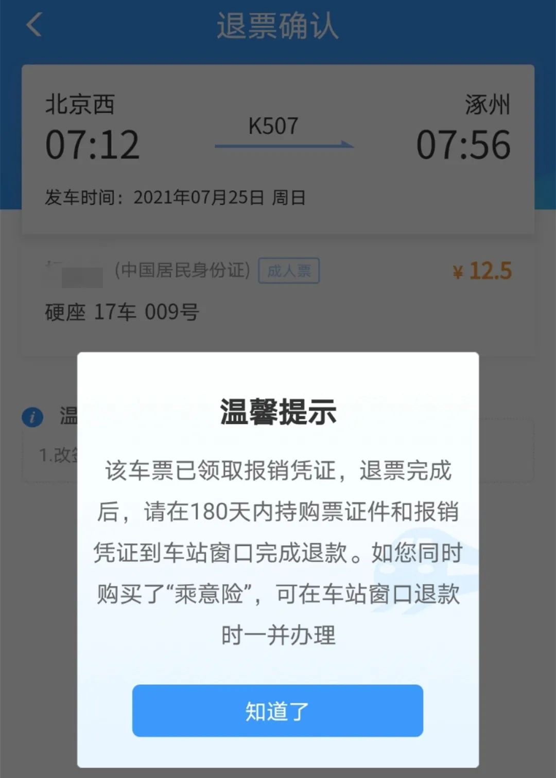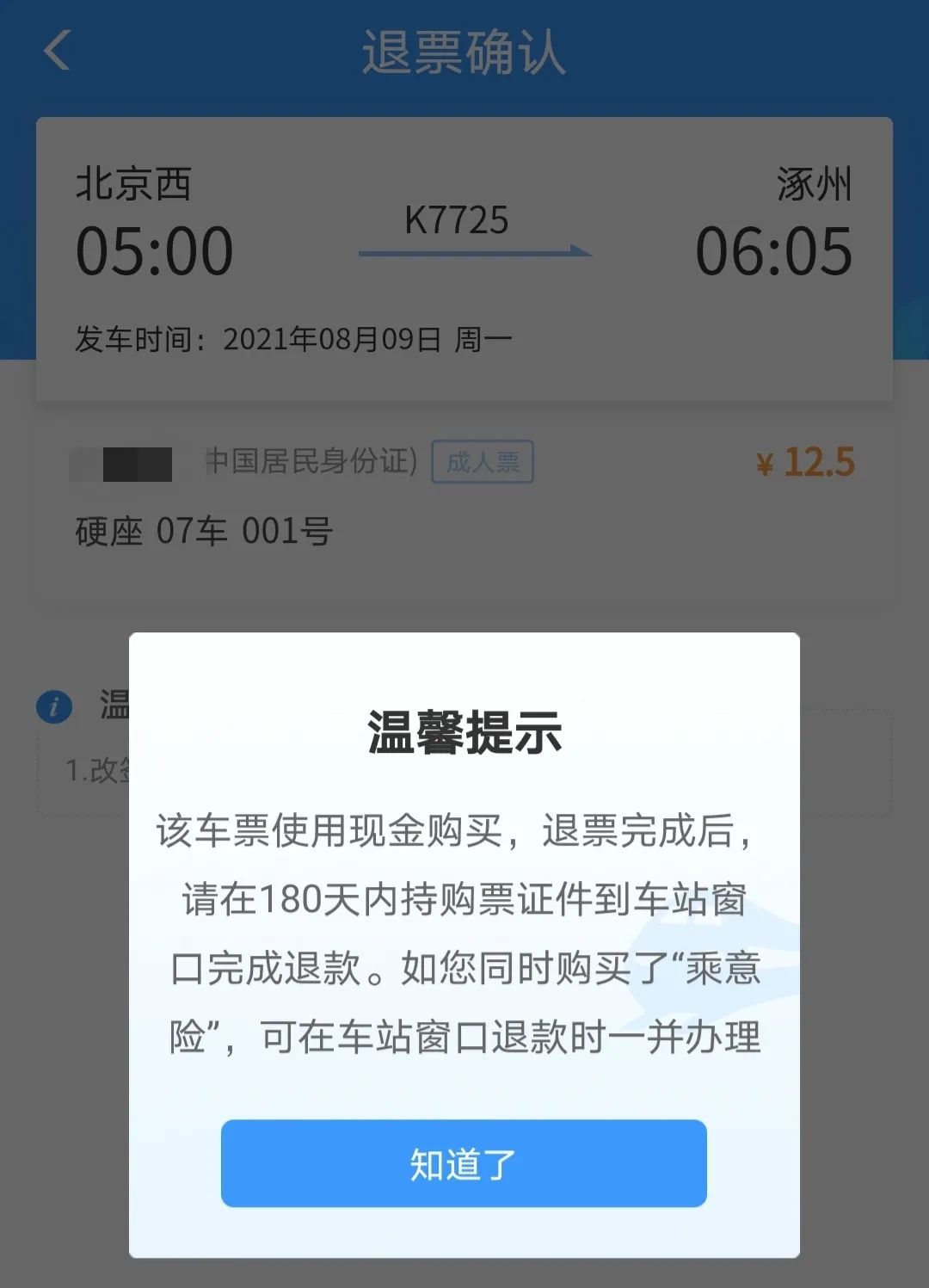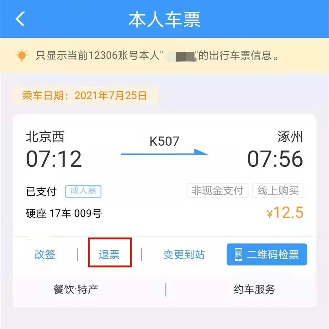 不用急着前往车站办理退票
