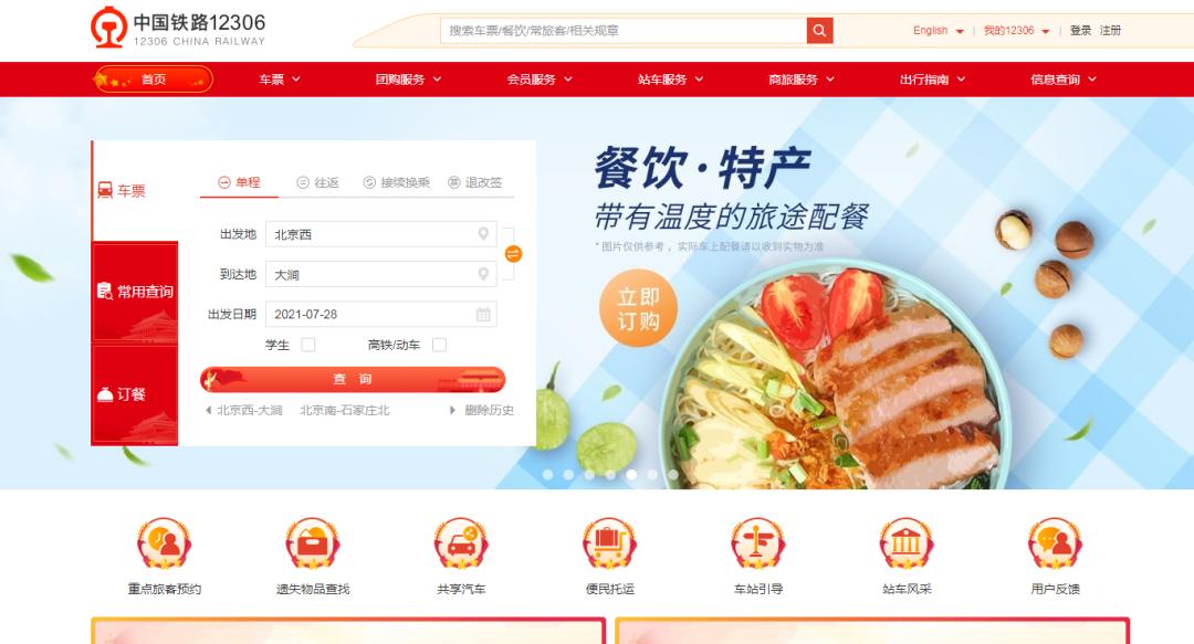 12306官方网站和手机客户端上的