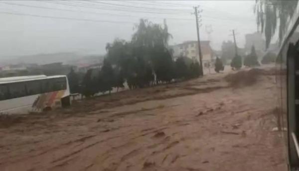 我们镇在两条河的交叉口,地势较低,我就往地势高一些的新中镇方向开,10来分钟后,看见山洪从上游倾泻而下,淹没路面,我赶紧把车开到附近高庙村村委会避难。十几分钟后,朋友圈里有人说,我们小区淹了,车都漂起来了,我家在一楼,幸好出来了。