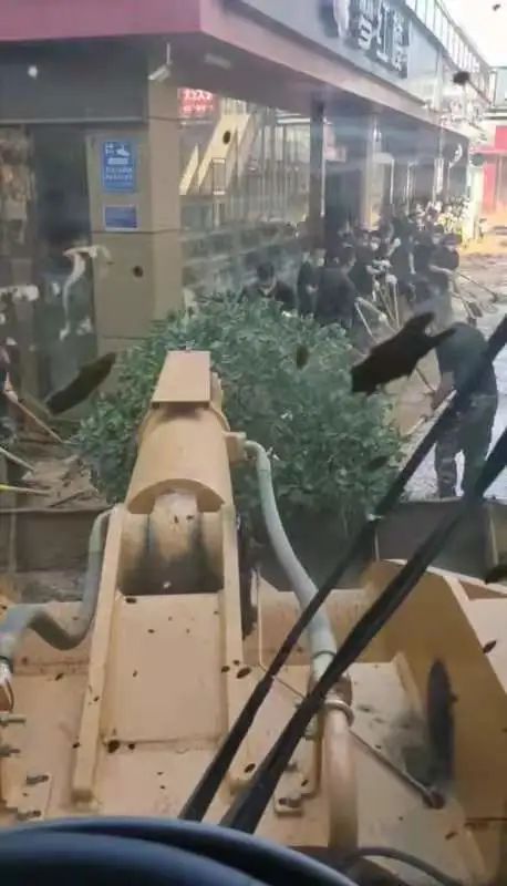 他们就带我回厂里找到了铲车,我用电线连接打火,启动后,慢慢往下开。公路上水流太急,我尝试从加油站后面绕过去,推倒一堵墙后,用铲斗往水里探,一米多深了还不见底,我不敢再下了,因为不知道水下路况咋样,要是有排水沟或者大坑,一下就翻车了。只能从公路上顺着激流一点一点地挪,车身左右晃动,刹车也有些失灵,当时我也很怕,但是眼看着那些人快掉下去了,不救不行,不管能不能救到,我都要试一下。