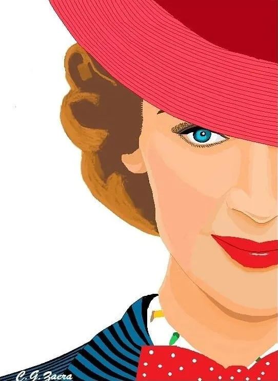 除了风景系列,她还会画人像,比如涂着红唇的名媛: