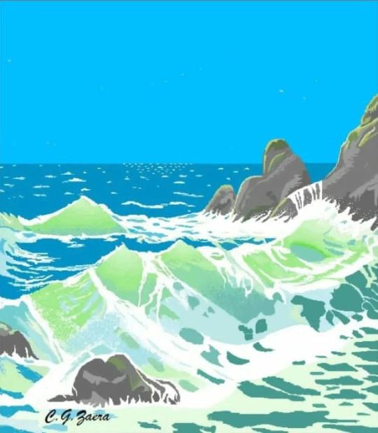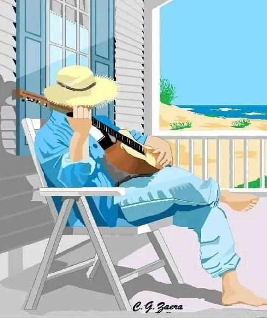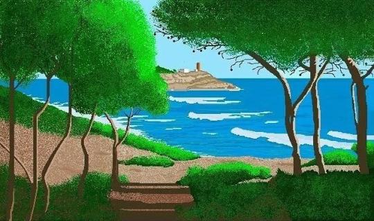 在她的画里,可以感受到她对丈夫浓浓的爱和思念,两人年轻时一起去过的海边: