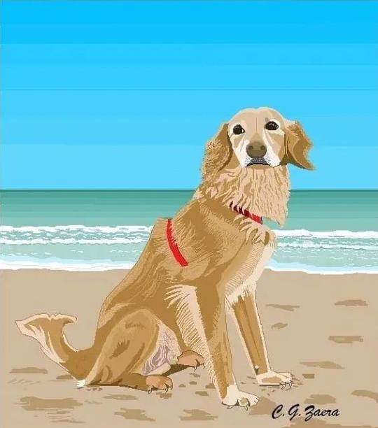 再比如狗狗的肢体画的有些僵硬,脖子上的项圈看起来也很奇怪: