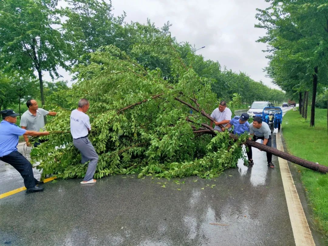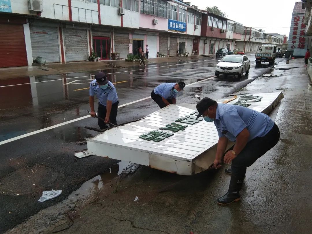 7月27日下午,泗洪县公安局魏营派出所民警在巡逻时发现,一杨树倒伏在道路中间,民警顶风冒雨帮助处置。7月28日上午,泗阳县爱园派出所民警在巡逻时发现,一大型广告牌被大风吹倒,民警快速清理,及时消除道路交通安全隐患。