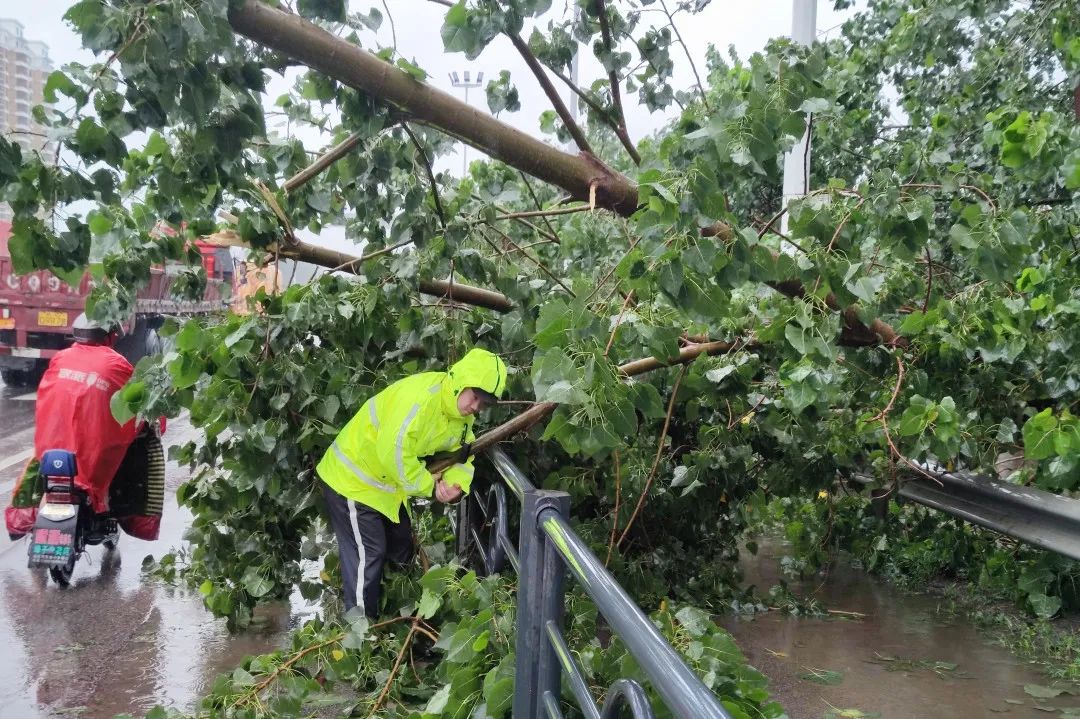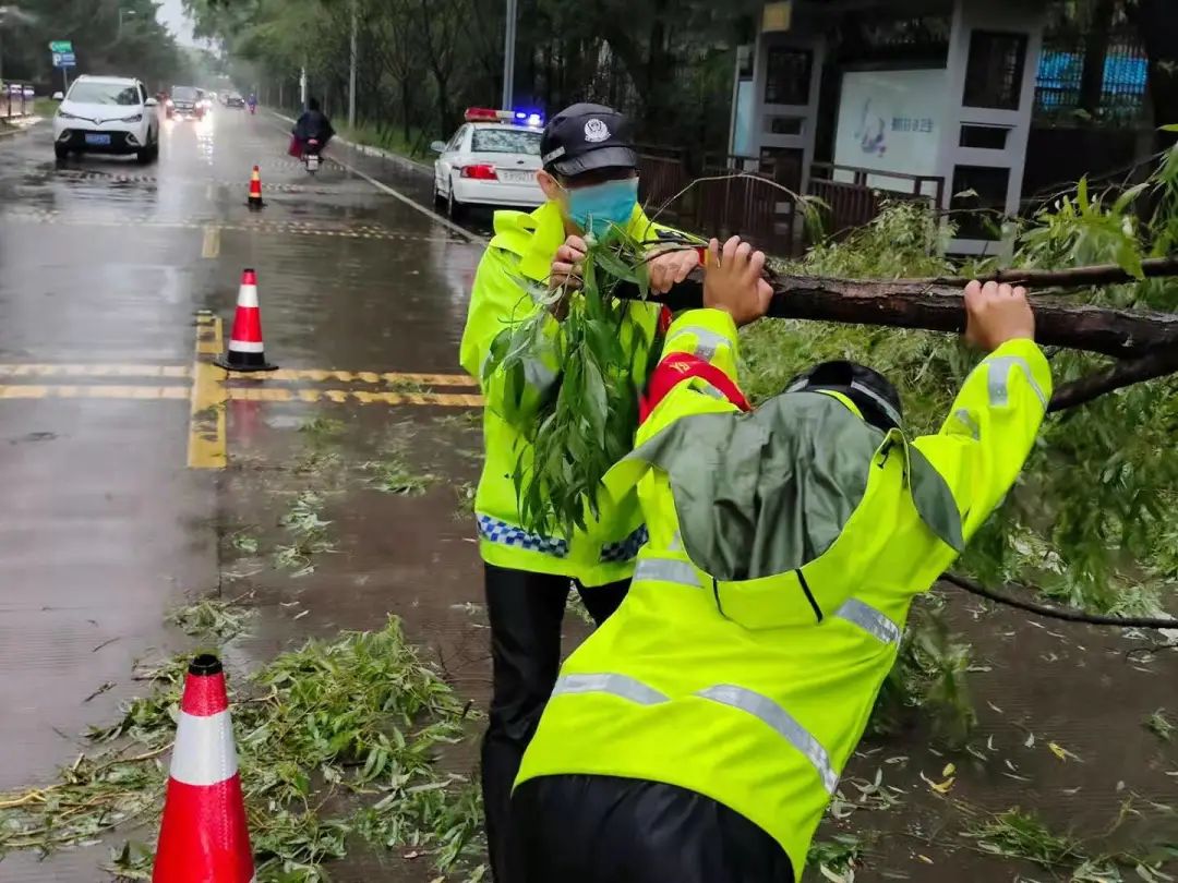 清理刮倒的广告牌、行道树,救助群众、清淤疏导……风雨一线,随处可见民警忙碌的身影,各项防范措施的落地落实,也尽最大可能减轻了“烟花”带来的灾害事故风险。