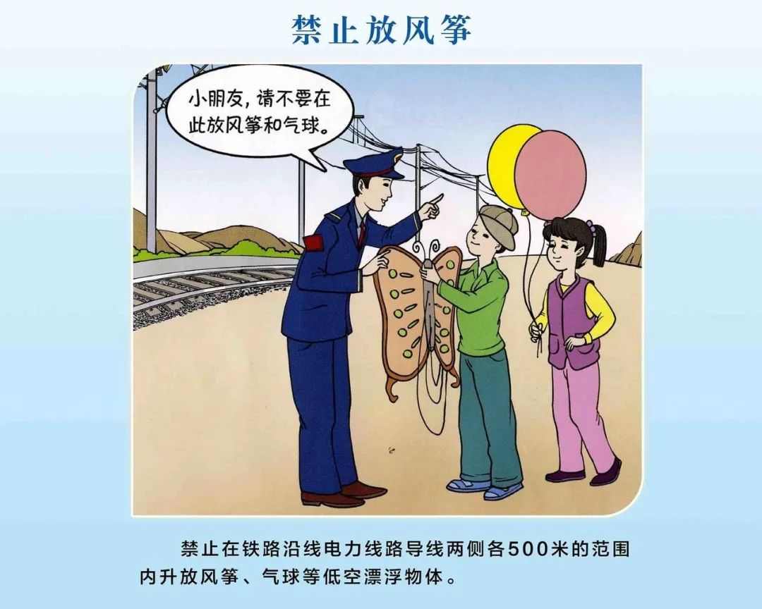 在铁路电力线路导线两侧各500米的范围内升放风筝、气球等低空飘浮物体;