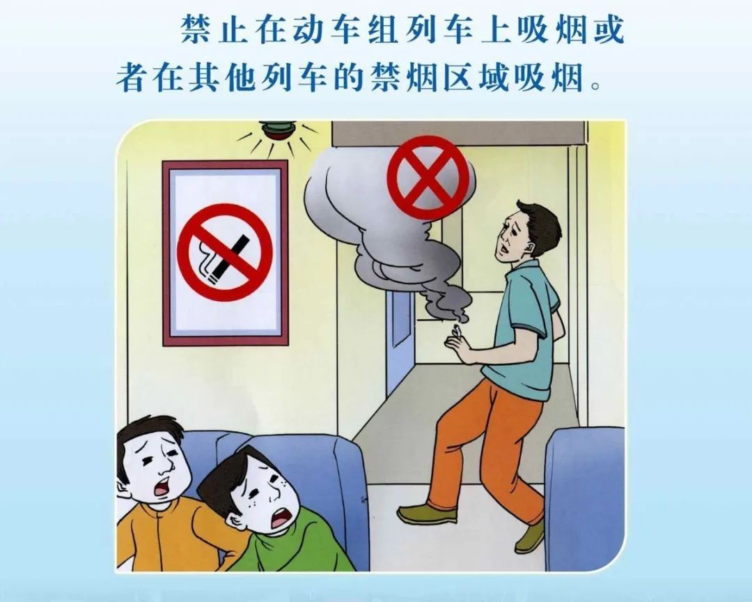 在动车组列车上吸烟或者在其他列车的禁烟区域吸烟;