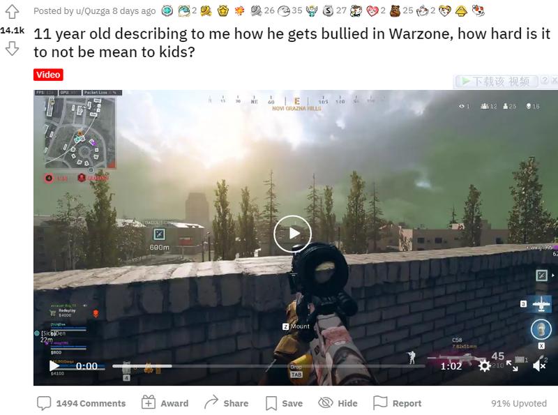 原标题:《《使命召唤:战区》中,他帮助11岁孩子免于霸凌的行为引起了热议》