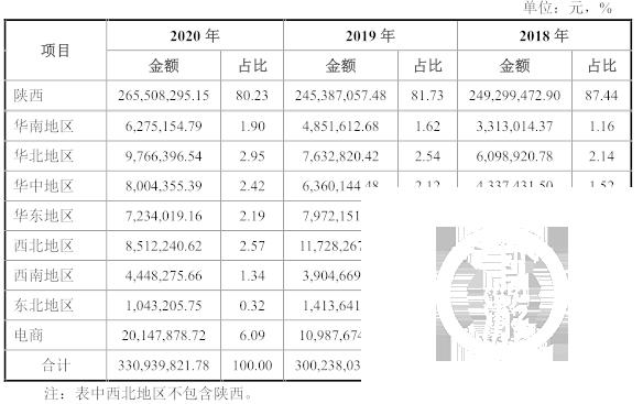2018年至2020年,冰峰饮料销售收入主要来自陕西,占比分别为 87.44%、81.73%和 80.23%。