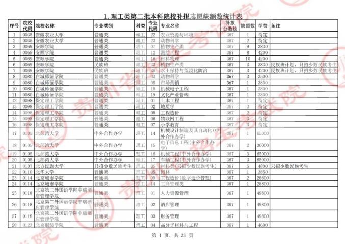 第二批本科院校平行志愿投档后,部分院校因考生不服从专业调剂退档和生源不足,尚有缺额,现进行网上补报。具体要求如下: