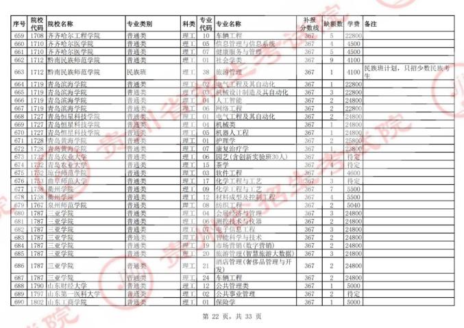 一、高考成绩达到二本线(文史479分,理工367分)的未被录取考生可根据附表公布的缺额情况及时补报志愿,个别院校对补报分数线有特殊要求,考生补报志愿时请仔细查看附表公布的补报分数线。