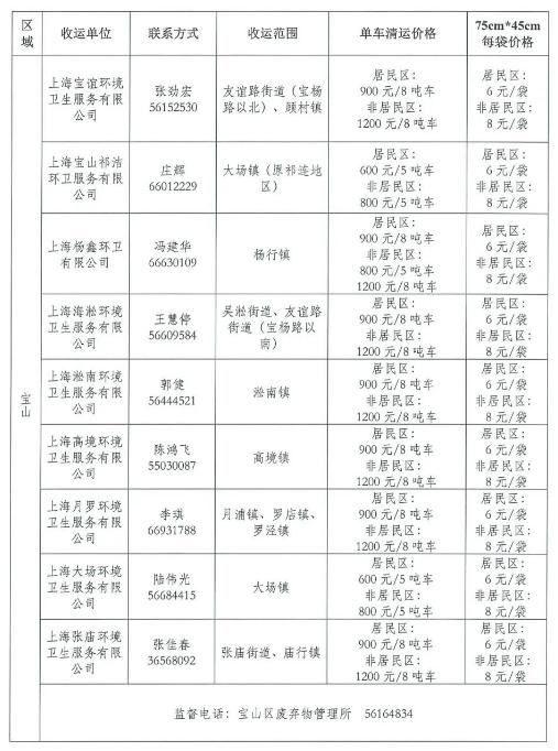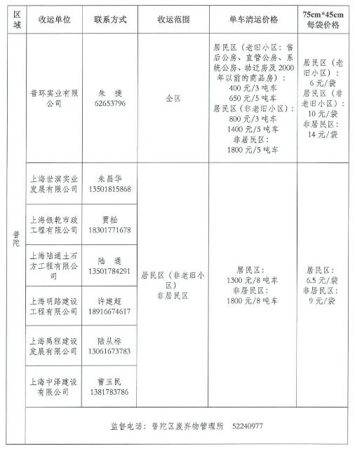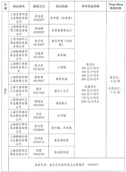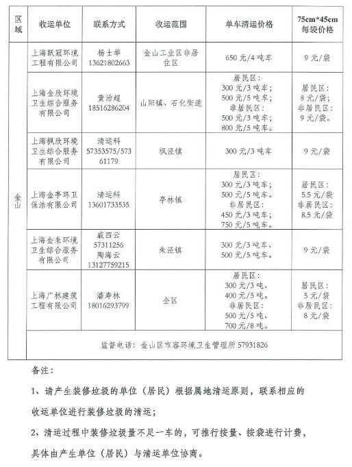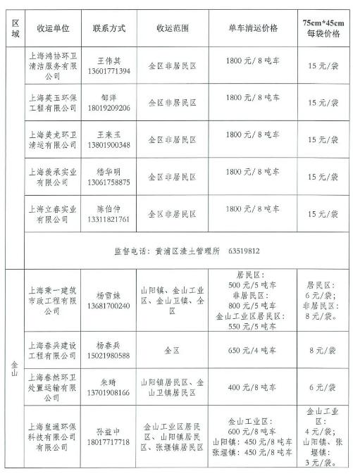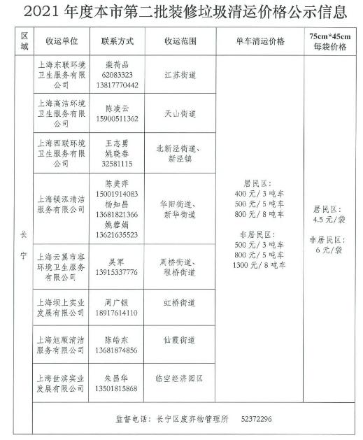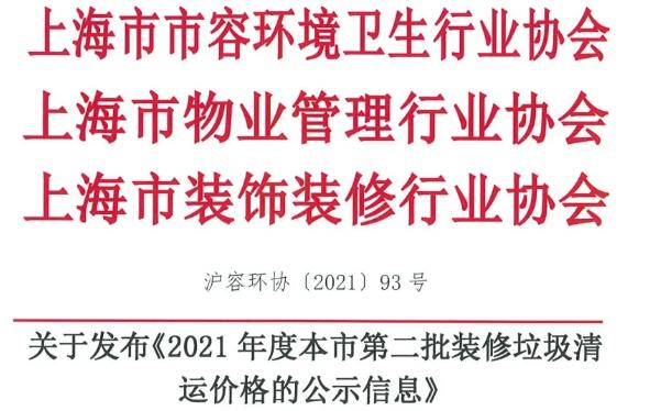为维护城市环境卫生面貌,保障广大市民切身利益,促进装修垃圾清运行业健康有序发展,建立和完善装修垃圾、大件垃圾投放方便、收运及时、收费规范的收运体系,根据《上海市建筑垃圾处理管理规定》《关于加强本市装修垃圾、大件垃圾投放和收运管理工作的通知》等文件要求,上海市市容环境卫生行业协会、上海市物业管理行业协会、上海市装饰装修行业协会采集了各区装修垃圾清运价格信息,现发布第二批价格信息,尚未发布价格的区可参照就近区的价格。(第一批价格信息,请戳→2021年度本市第一批装修垃圾清运价格公示信息发布啦!)