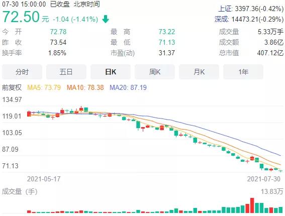 截至7月30日收盘,甘李药业股价收报72.5元/股,跌幅1.41%,最新总市值407.12亿元。通化东宝股价收报11.06元/股,涨幅1.65%,最新总市值224.96亿元。