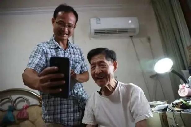 受助学生小雨今年毕业,也在杭州找到了工作。因为王绅森用的是旧款的老人手机,没办法视频通话。借用热心人的手机,小雨和王爷爷进行了视频通话。