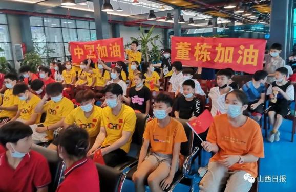 东京奥运赛场,董栋的表现,牵动着很多人的心。当日,山西体育中心组织了董栋征战奥运加油专场活动,来自山西省体操队、艺术体操队、蹦床队、武术队等队伍的100多人,在电视机前为董栋加油助威。现场国旗挥动,条幅招展。董栋的腾挪闪跃,师弟师妹们都看在眼里,记在心上,还有队员拿着小本在一笔一划记录董栋的成绩。
