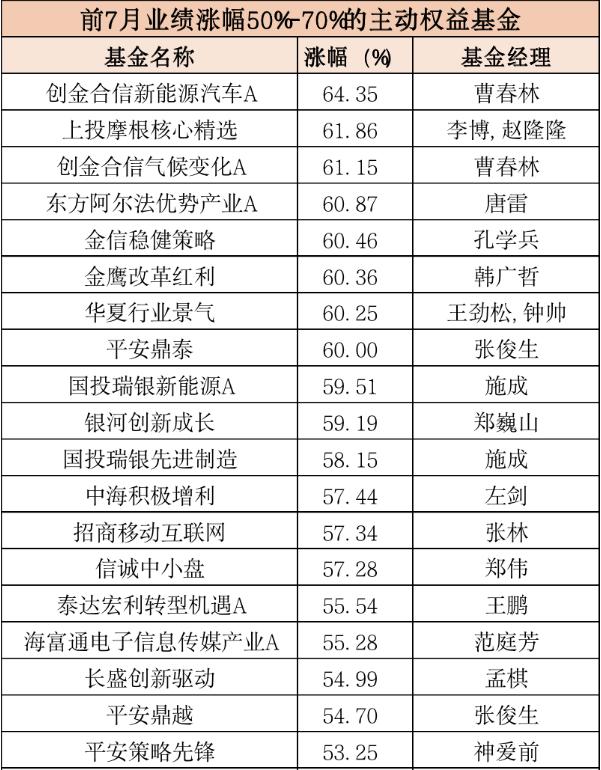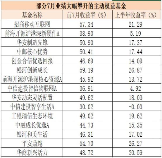 相较于上半年表现,7月份多只主动权益基金业绩突飞猛进。