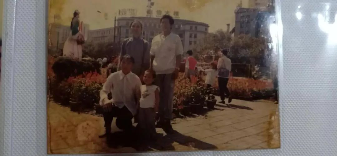 李华:奶奶爸爸妈妈还有我,这是我一家人第一次照相,也是最年轻的记忆,大人易老小孩易大,如今我已30好几,这张历迹斑斑的照片承载着30年的回忆,也记录下当时南昌中心八一广场的样子。