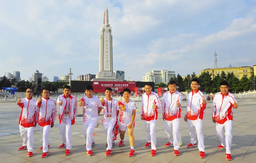 刘强:第七届世界军人运动会火炬传递南昌站部分火炬手训练合影,2019年7月31日。