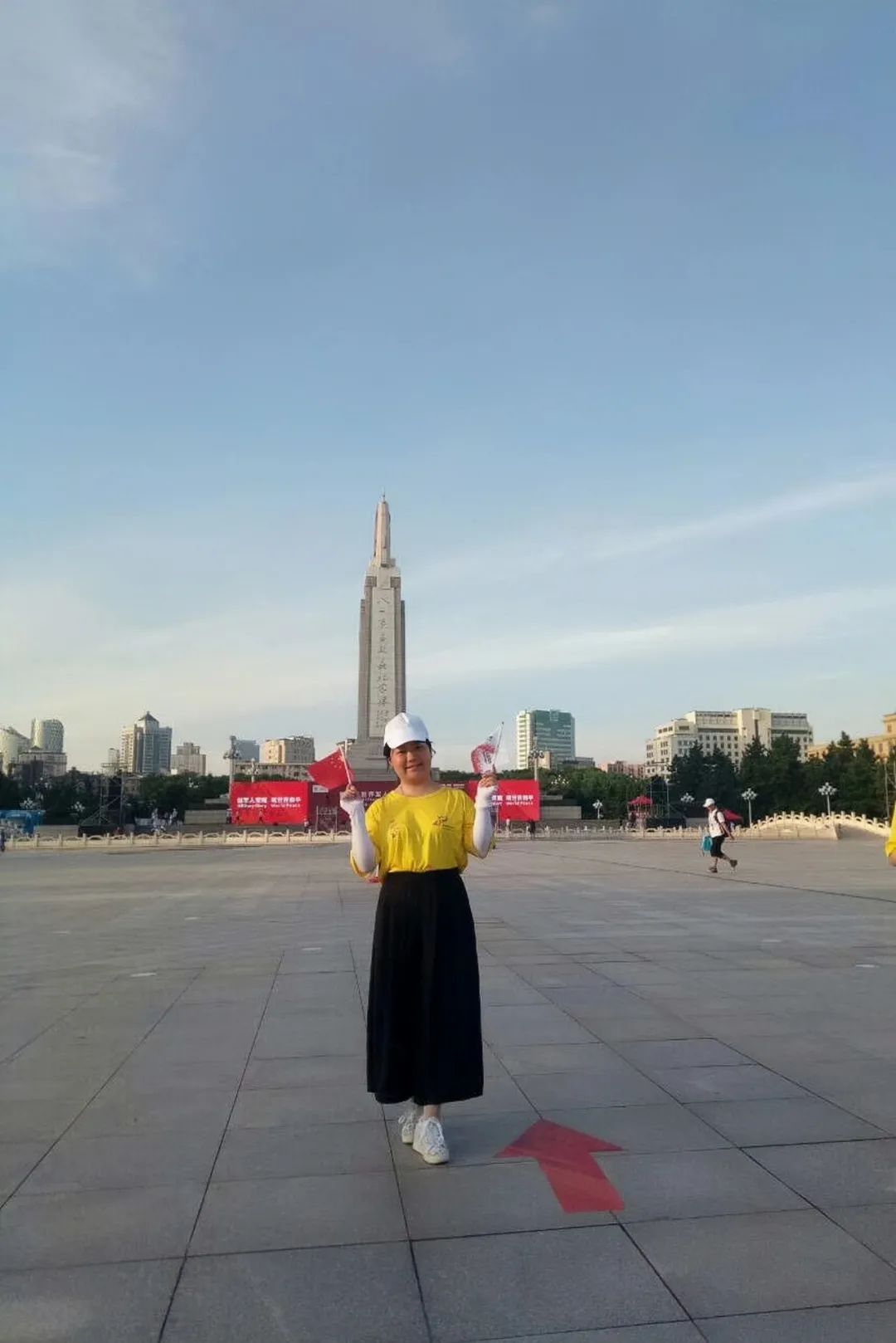 刘梅:建党100周年当天在八一广场留念,为了纪念这个特殊的日子,我们很早就出发去了八一广场。