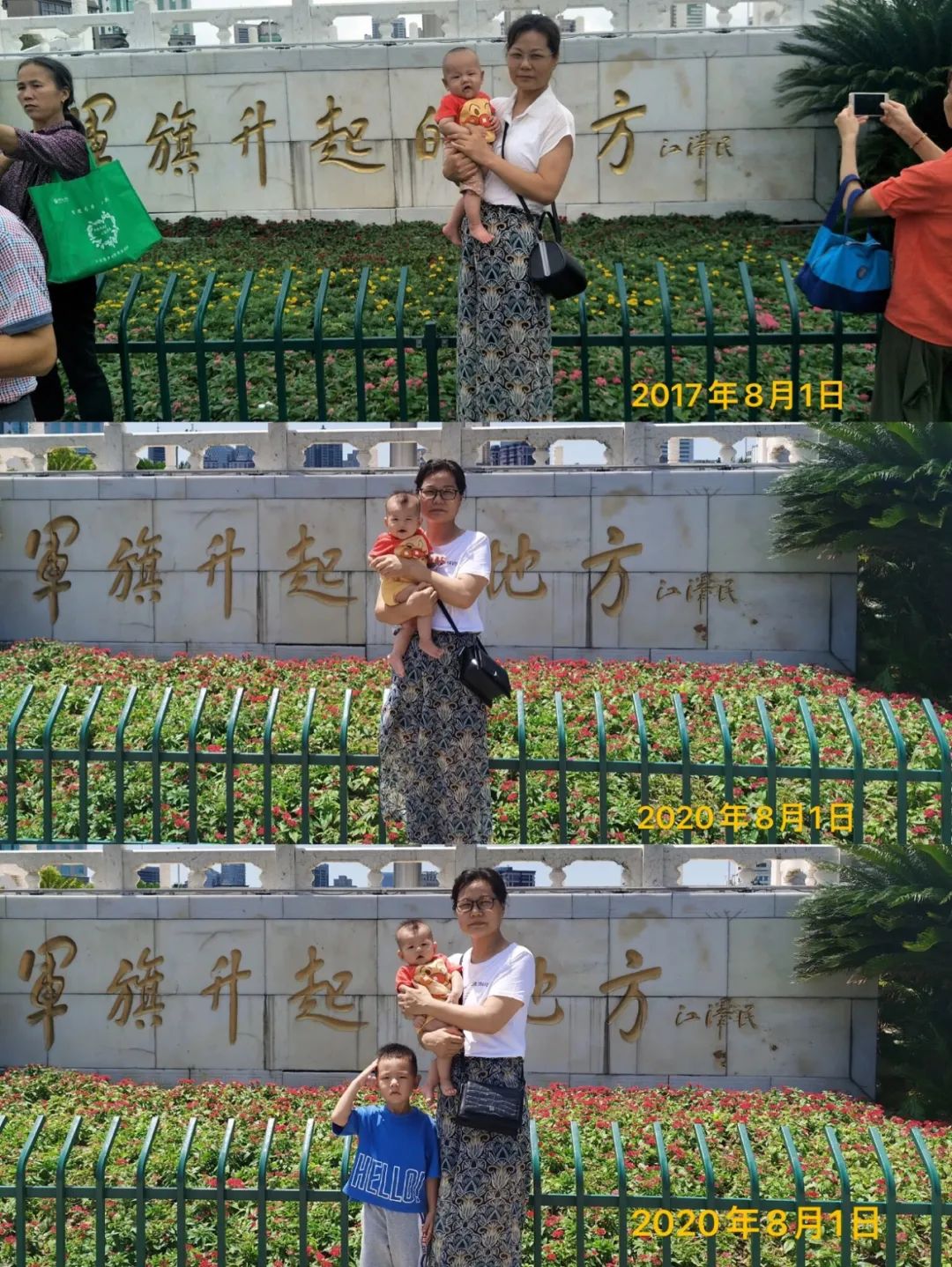 邓晓:1988年探亲在八一广场留影,退伍回来结婚成家,带着刚满周岁的儿子在八一广场留影,今年上半年又带着几个月的孙女在八一广场留影,八一广场成了祖孙三代共同走过的红色足迹。