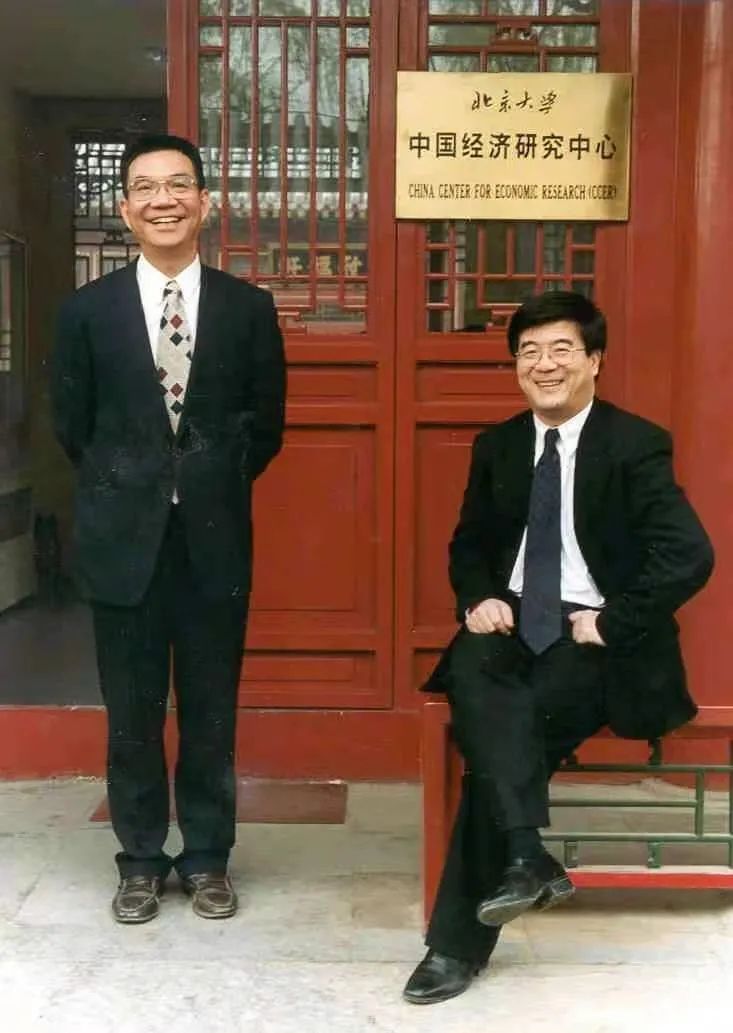▲2004年回国参与创办北京大学中国经济研究中心,与林毅夫合影